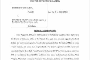 A federal judge ruled Thursday that President Donald Trump’s deployment of National Guard troops to patrol Washington, D.C., violates federal law and illegally infringes on the District’s authority to govern itself. U.S. District Judge Jia M. Cobb of the U.S. District Court for the District of Columbia granted a preliminary […]