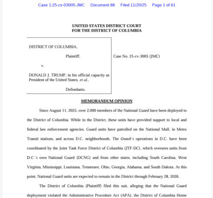 Judge Rules Trump’s National Guard Deployment in D.C. Violates Federal Law and Infringes on District Authority