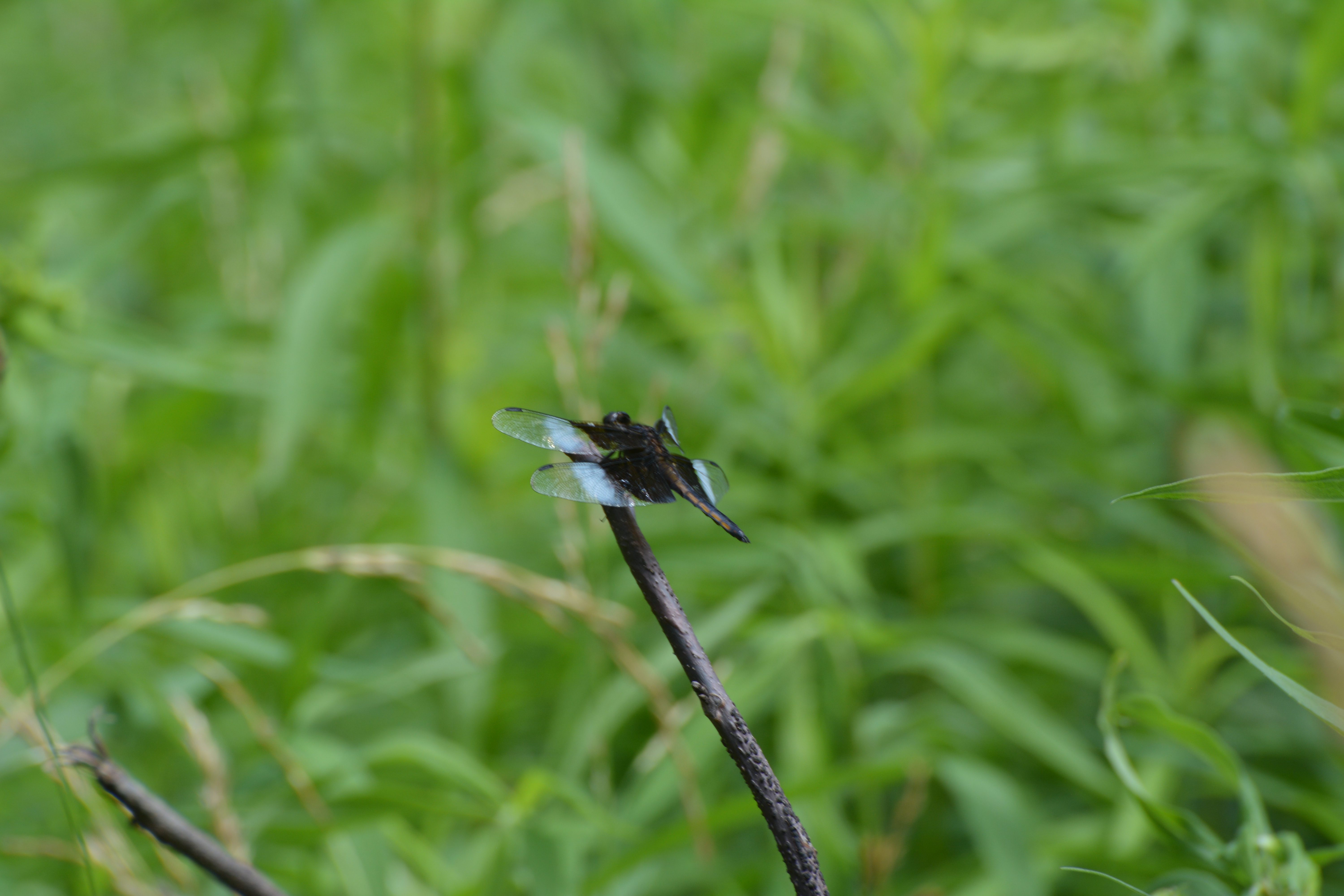 I turned around and headed back, staying to the right along the path again. Once again, I found myself winding through creaking trees, watching the dragonflies zip around me and pausing as the bees found the flower that would cause them to stop.