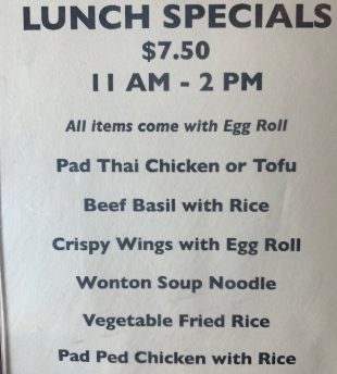 Last week, they started featuring lunch specials. For just $7.50, you can get an entree and an egg roll. These are available for carryout as well.
