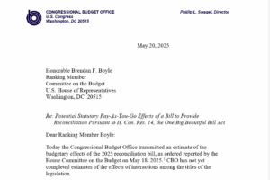 The Congressional Budget Office has issued a warning that President Donald Trump’s tax and spending legislation could trigger automatic cuts to Medicare totaling nearly $500 billion over the next decade, according to a May 20 letter from CBO Director Phillip Swagel to House Budget Committee Ranking Member Brendan Boyle. The warning […]