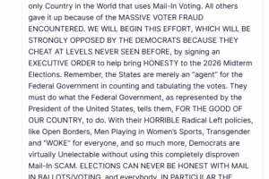 President Donald Trump announced Monday his intention to eliminate mail-in ballots through executive action, following what he described as reinforcing comments from Russian President Vladimir Putin about American voting practices. On the morning of Aug. 18, President Trump took to his Truth Social platform to declare his comprehensive assault on […]