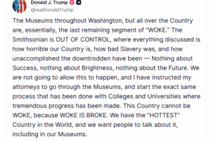 On August 19, President Donald Trump posted on Truth Social expressing his dissatisfaction with the Smithsonian museums and their coverage of American history, particularly their treatment of slavery. In his post, Trump wrote: “The Museums throughout Washington, but all over the Country are, essentially, the last remaining segment of ‘WOKE’. […]