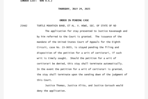The U.S. Supreme Court issued an order Thursday pausing a lower court mandate in a closely watched North Dakota redistricting case, temporarily preserving the state’s current legislative map while the legal process continues. The intervention in the North Dakota redistricting case is tightly bound to the future of the Voting […]