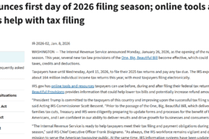 The Internal Revenue Service officially kicks off the 2026 tax filing season on January 26. All individual taxpayers must submit their returns and pay any taxes owed by April 15, 2026, to avoid penalties and interest. The IRS anticipates receiving approximately 164 million individual income tax returns during this filing […]