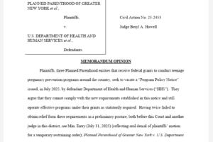 U.S. District Judge Beryl Howell ruled that the Department of Health and Human Services must halt enforcement of new requirements imposed on recipients of federal teen pregnancy prevention grants. The lawsuit arose from a July 2025 policy notice issued by HHS Secretary Robert F. Kennedy Jr.’s department that required recipients of […]
