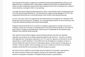 With just hours remaining until the federal government funding expires, negotiations between Congressional leaders and President Trump failed to produce a breakthrough on Monday. The government runs out of money at midnight on Sept. 30, marking the start of fiscal year 2026. Without Congressional action to pass either full-year appropriations bills […]