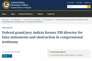Former FBI Director James Comey was indicted Thursday by a federal grand jury in Virginia on charges of making false statements and obstruction of justice. The indictment came just days after Trump publicly demanded on Truth Social that Attorney General Pam Bondi move “now” to prosecute Comey and other political […]