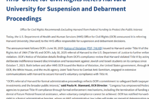 The Department of Health and Human Services announced Monday that it is initiating proceedings to potentially bar Harvard University from receiving federal funding across all government agencies. The HHS Office for Civil Rights has formally referred Harvard to the department’s suspension and debarment office, a rarely used but powerful mechanism […]