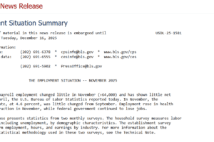 U.S. Unemployment Rate Holds 4.6% as Job Growth Remains Subdued in November