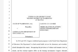 U.S. District Court Judge Kymberly K. Evanson in Seattle ruled on October 27 that the Trump administration must release millions of dollars in grants intended to address the shortage of mental health workers in schools. The preliminary ruling applies to certain grantees in sixteen Democratic-led states that challenged the Education […]