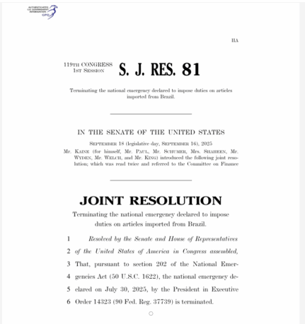 Senate Votes to Block Trump’s Tariffs on Brazil in Bipartisan Rebuke