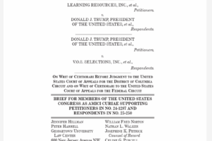 A bipartisan group of 207 members of Congress has filed an amicus brief urging the Supreme Court to rule that President Donald Trump exceeded his constitutional authority by imposing tariffs under the International Emergency Economic Powers Act (IEEPA). The 31-page brief, filed October 24, 2025, in the consolidated cases Learning Resources, […]