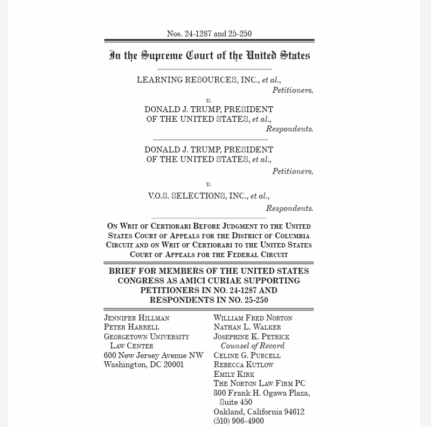 Congressional Amicus Brief Challenges Trump’s Tariff Authority in Supreme Court