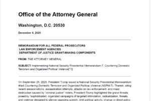 Attorney General Pam Bondi has issued a memorandum directing all federal prosecutors, law enforcement agencies, and Department of Justice (DOJ) grant-making components to aggressively target “domestic terrorism” threats defined by a new, specific set of ideological markers. The directive, leaked to several news outlets, serves as the operational framework for […]