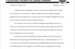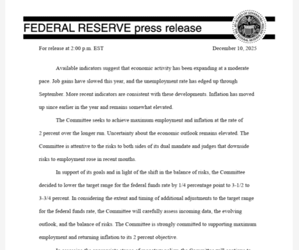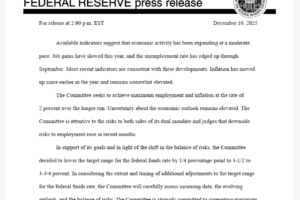 The Federal Reserve lowered its benchmark interest rate by a quarter percentage point on December 10, marking the third consecutive cut this year. The Federal Open Market Committee voted 9-3 to reduce the federal funds rate to a target range of 3.5% to 3.75%, the lowest level in more than […]