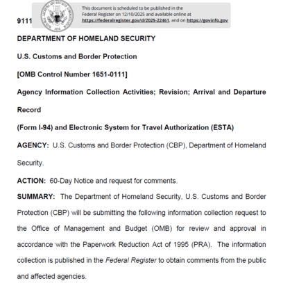 U.S. Customs and Border Protection has unveiled changes to the Electronic System for Travel Authorization that would expand the personal information required from millions of foreign visitors seeking visa-free entry to the United States, according to a Federal Register notice published December 10. The proposed revisions would make social media […]